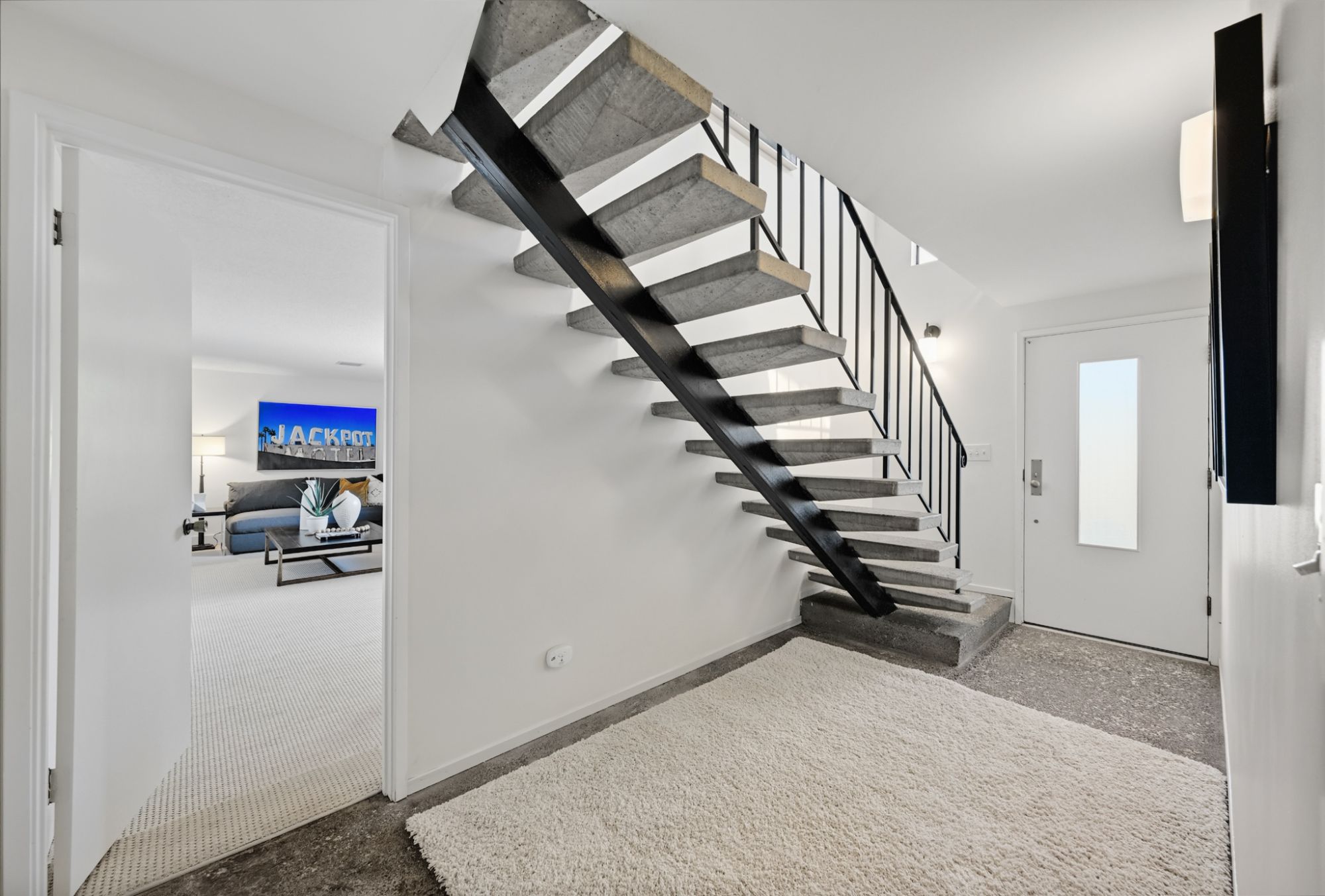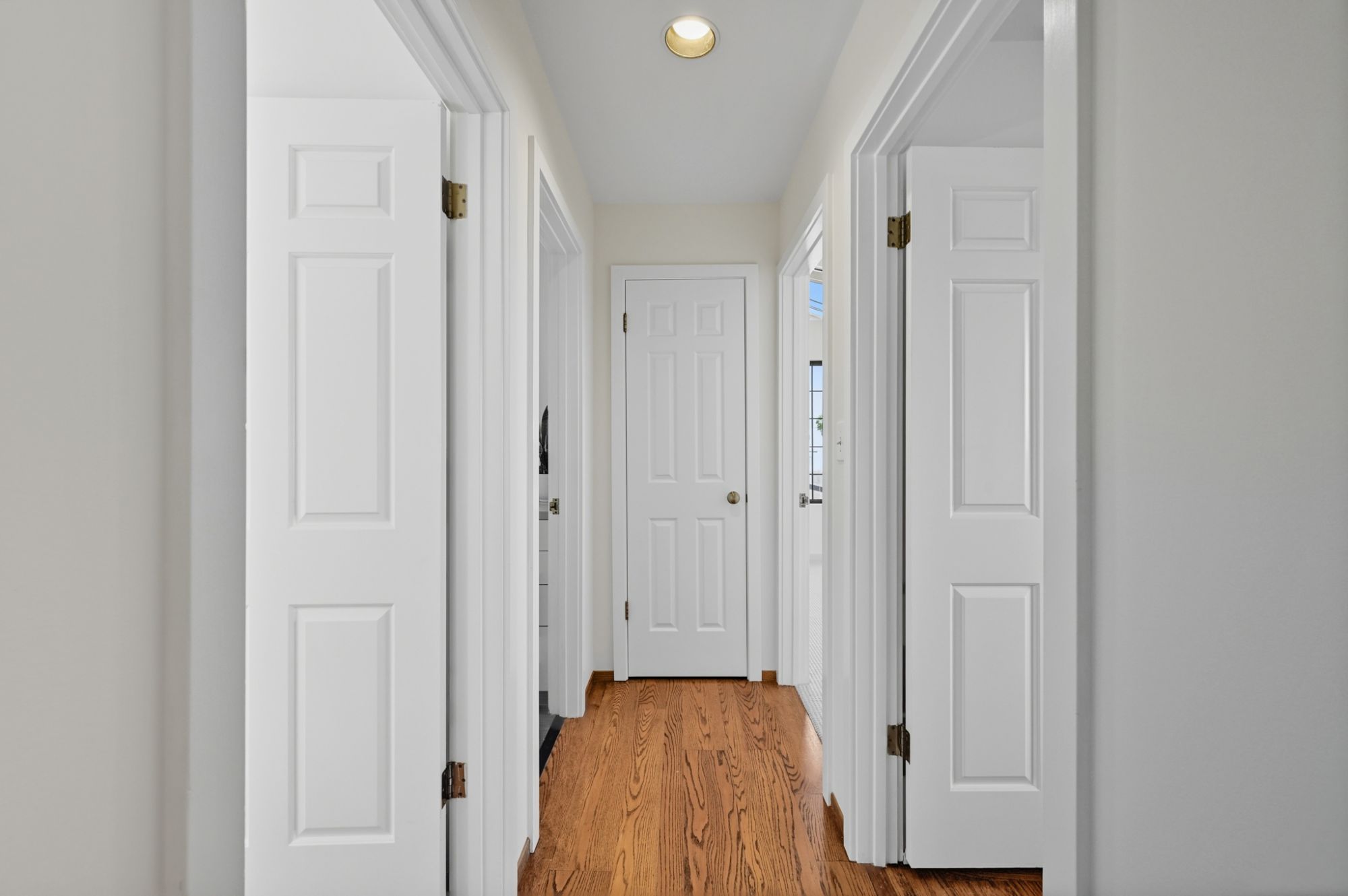 level to be greeted by vaulted ceilings and hardwood floors. The spacious