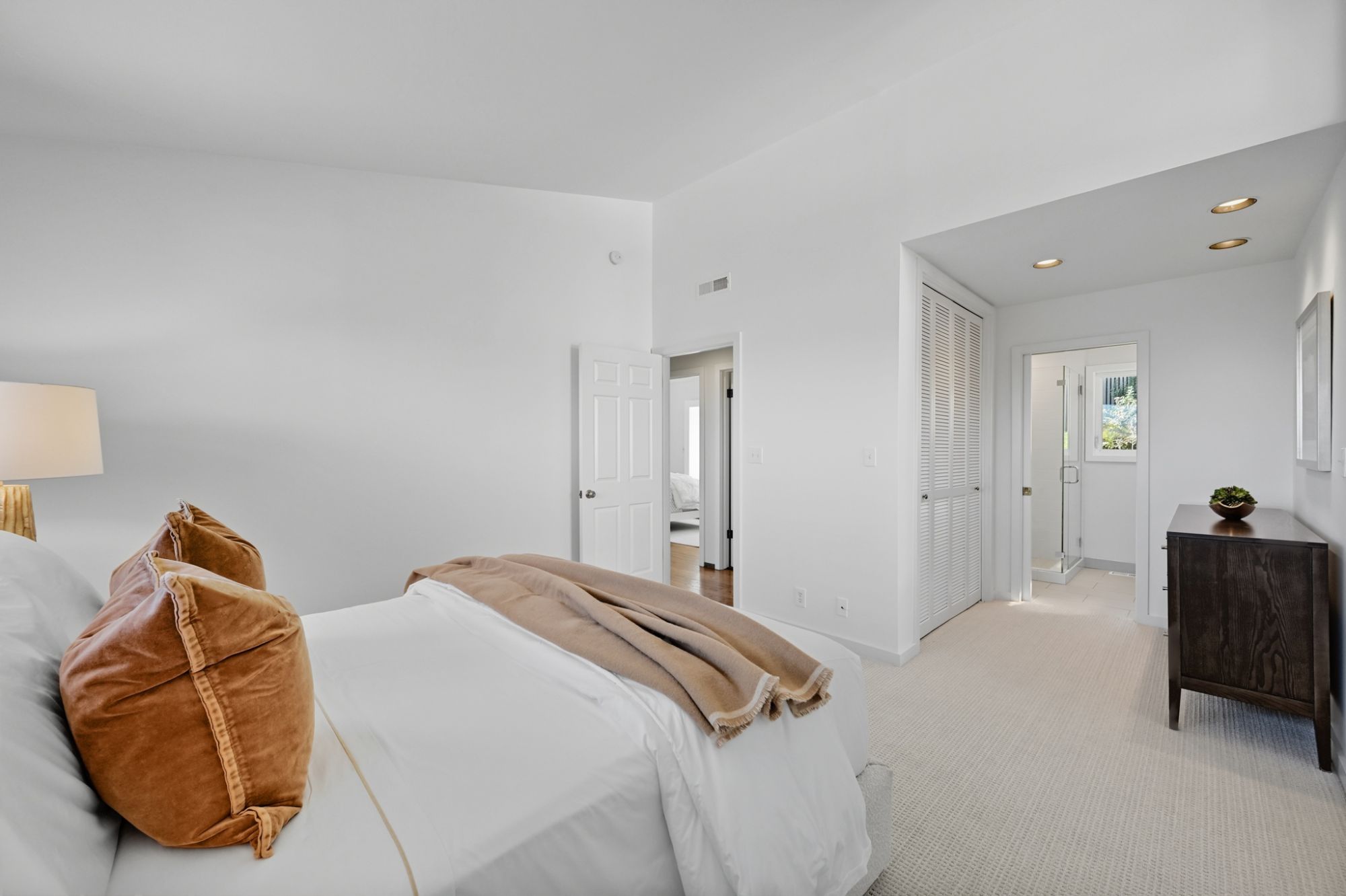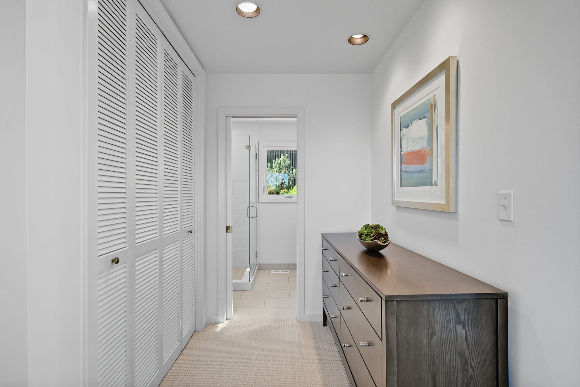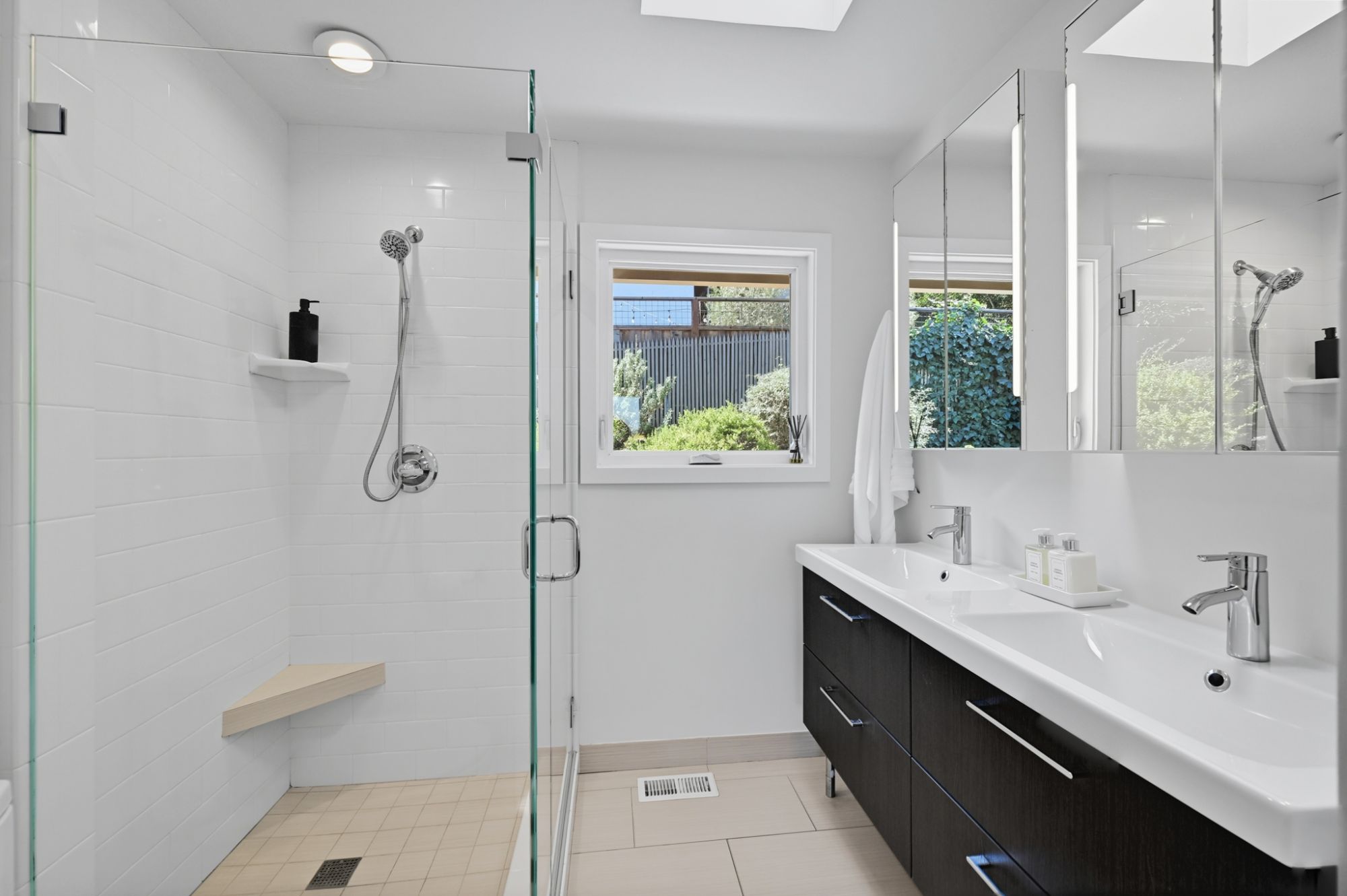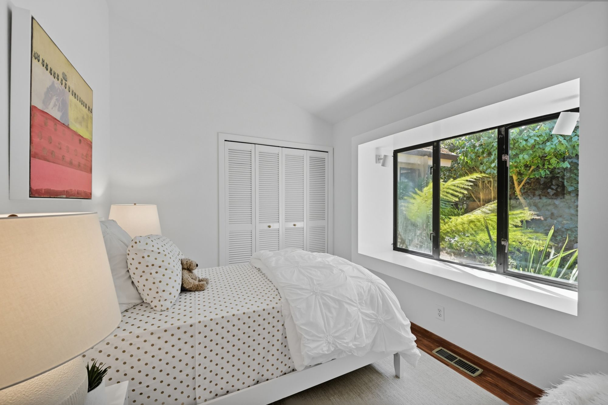 deck and gardens. Down the hall, the primary suite includes a remodeled bath