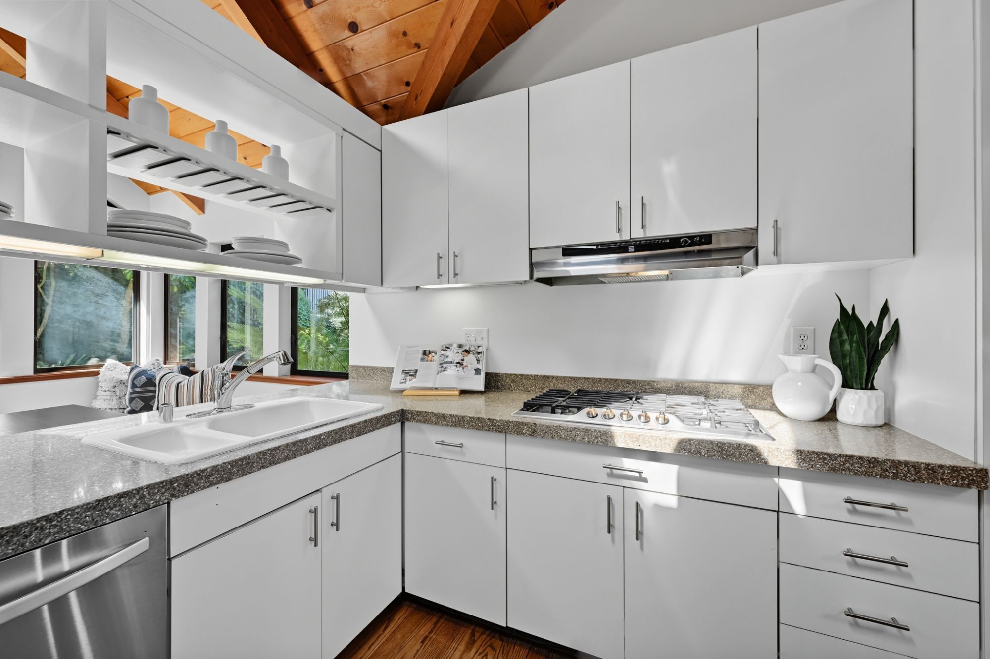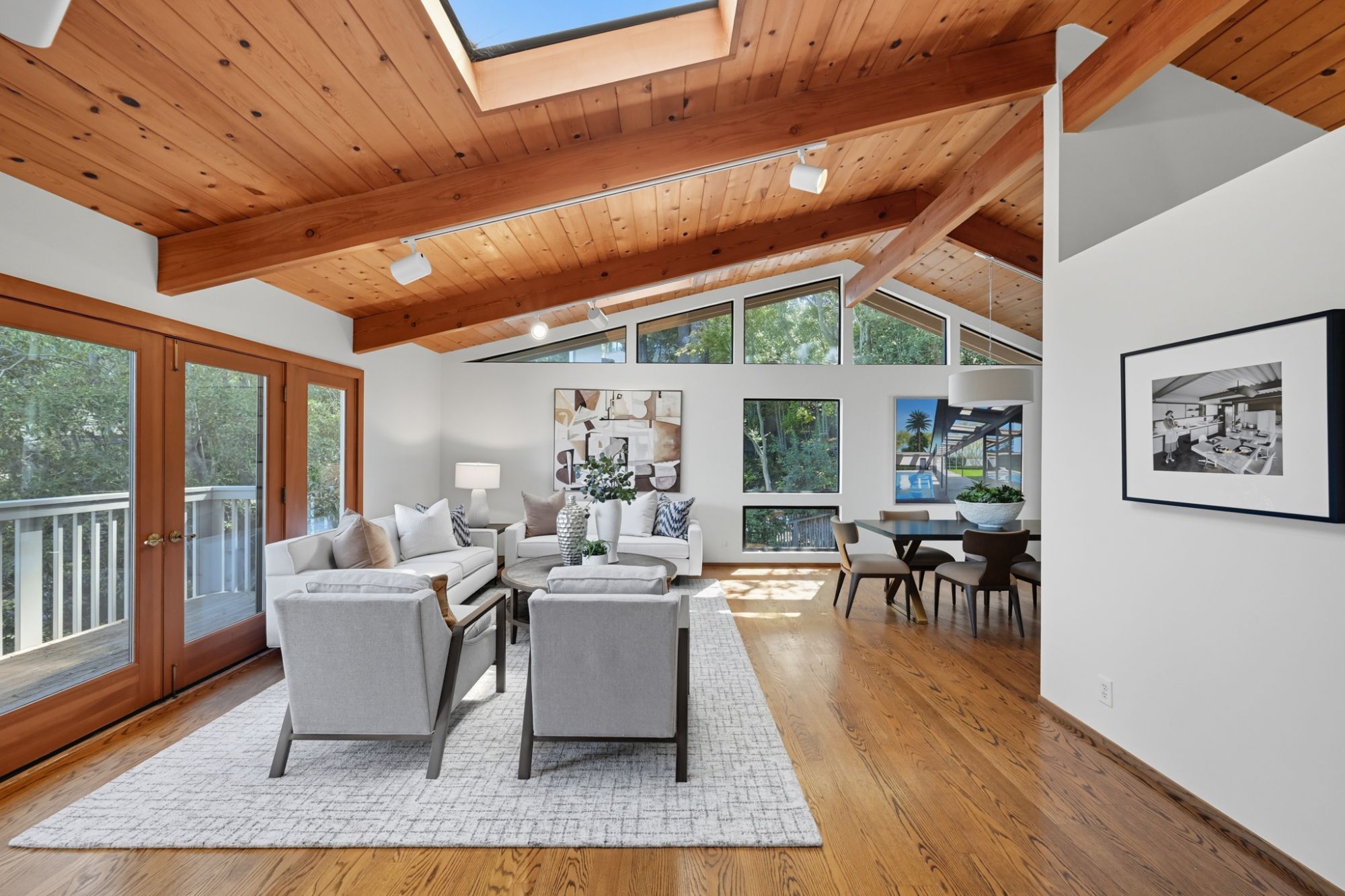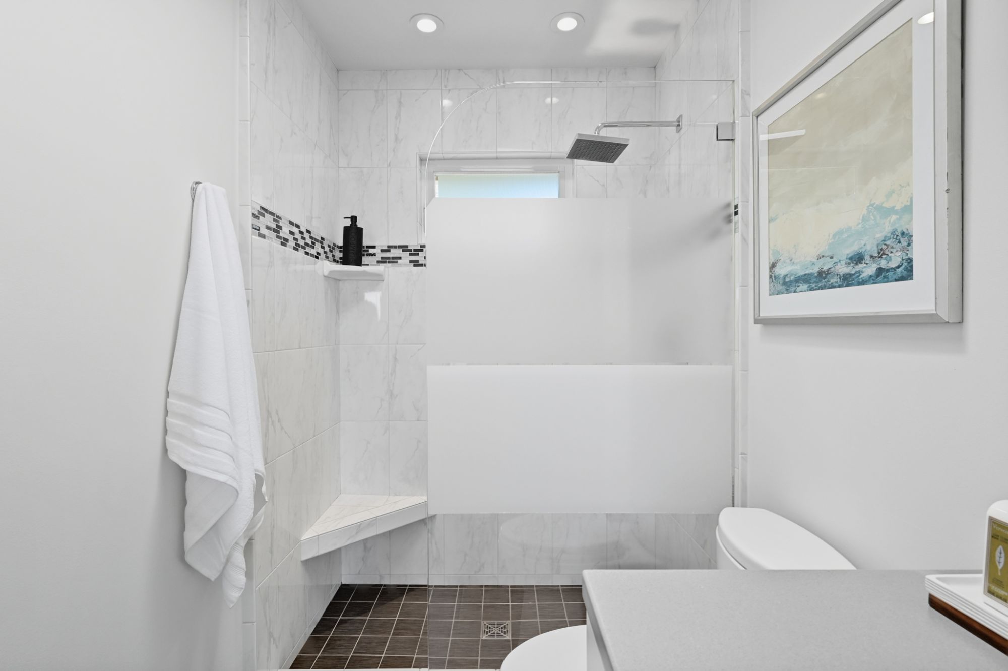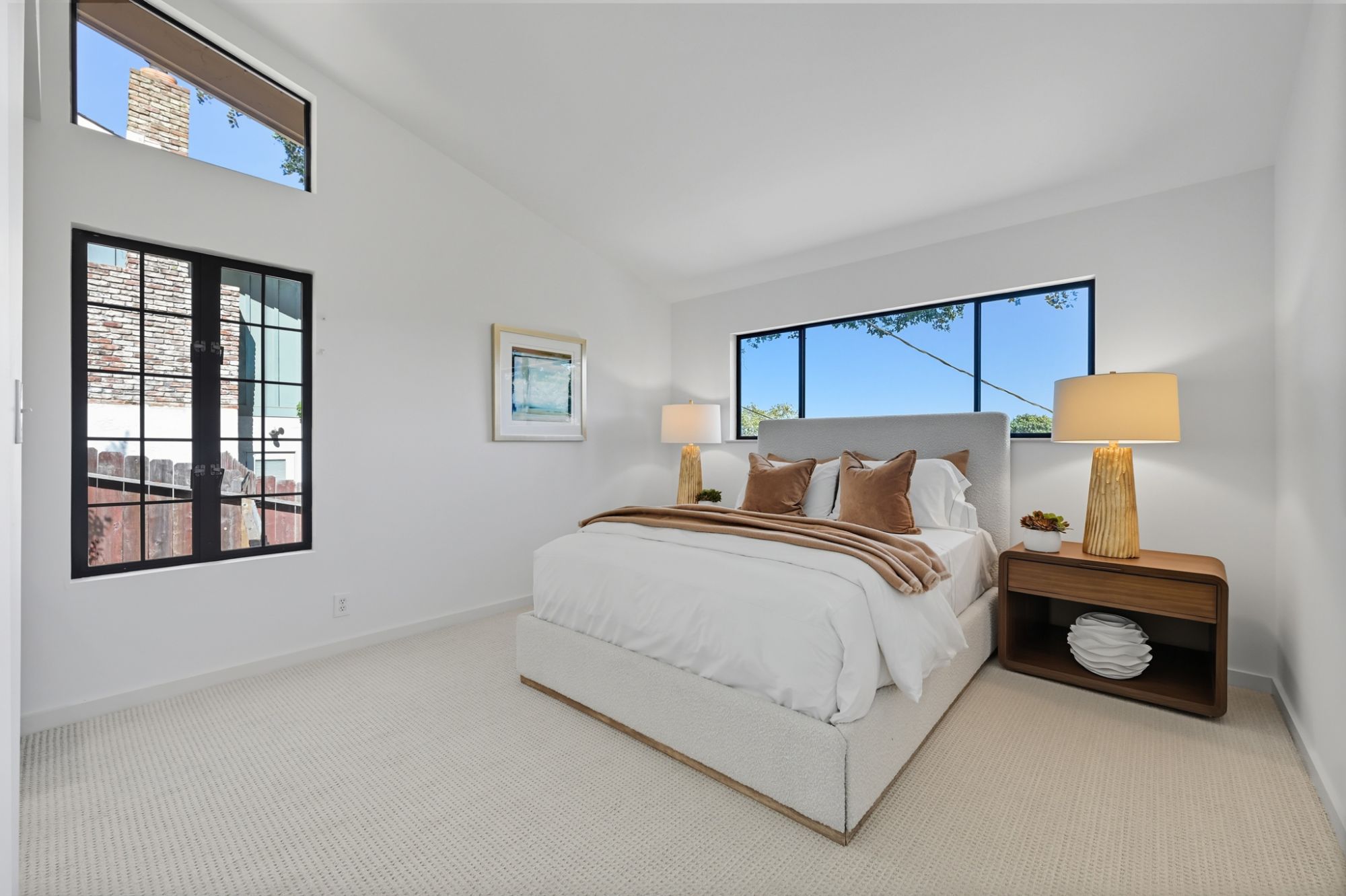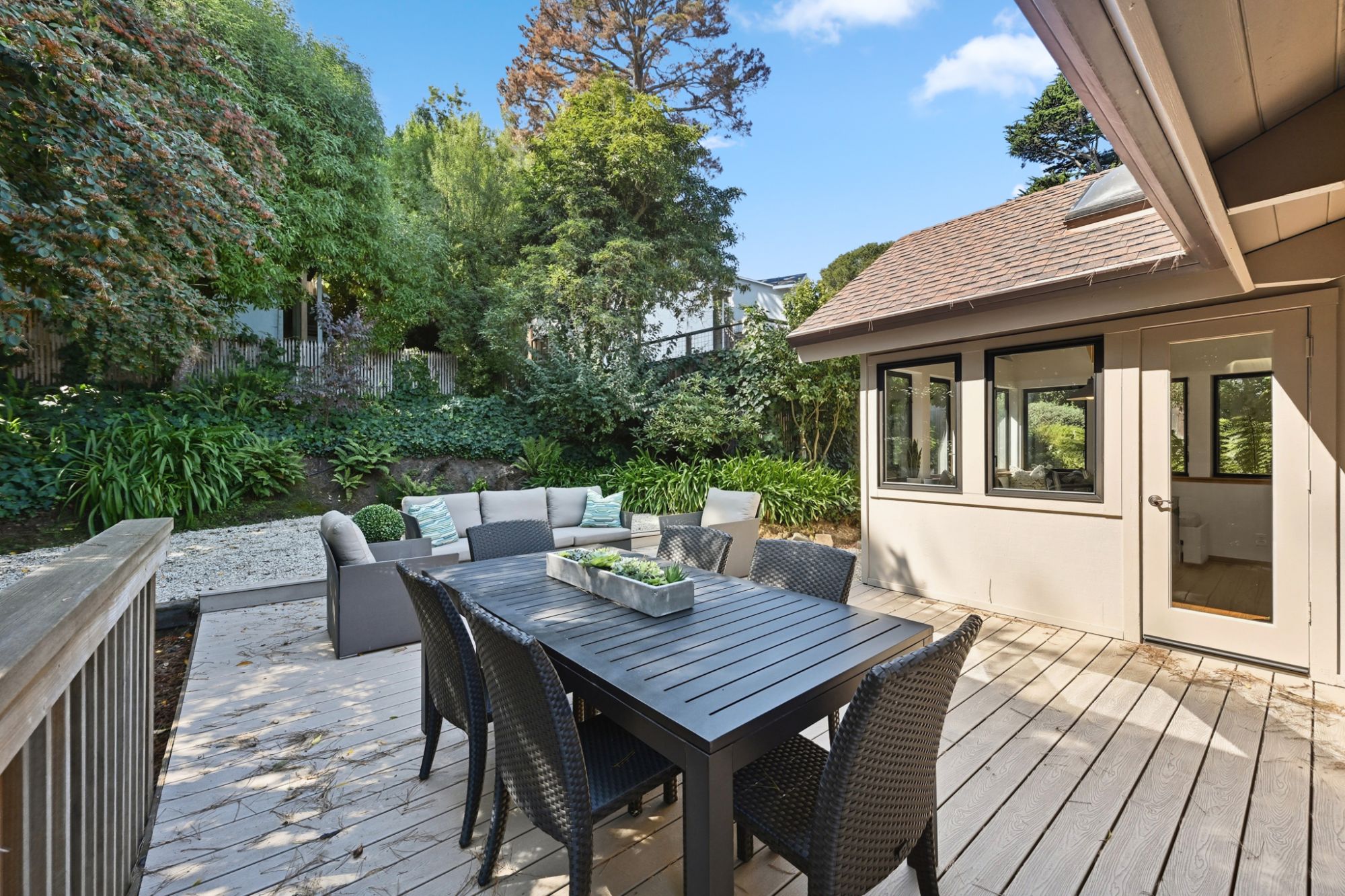 deck and gardens. Down the hall, the primary suite includes a remodeled bath