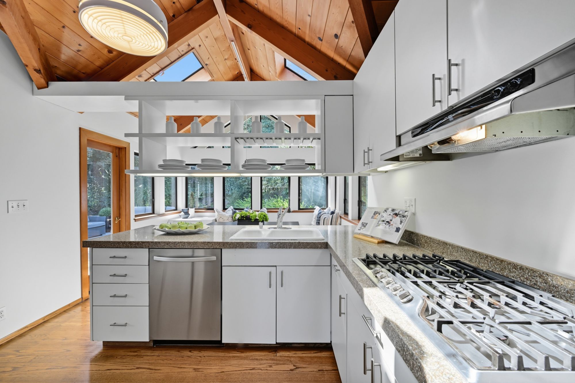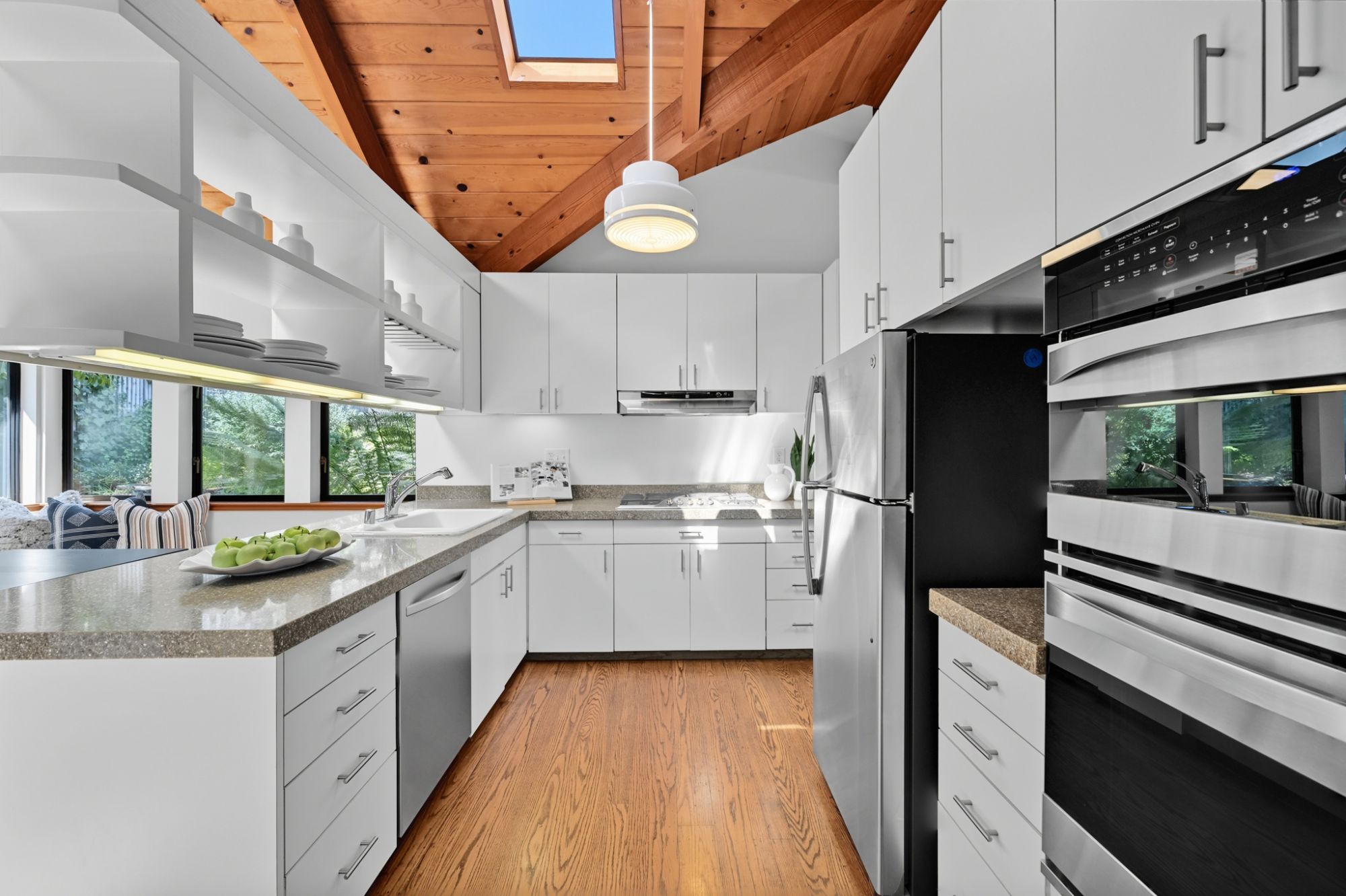 views, while its dining area opens to the tranquil back yard. The kitchen is