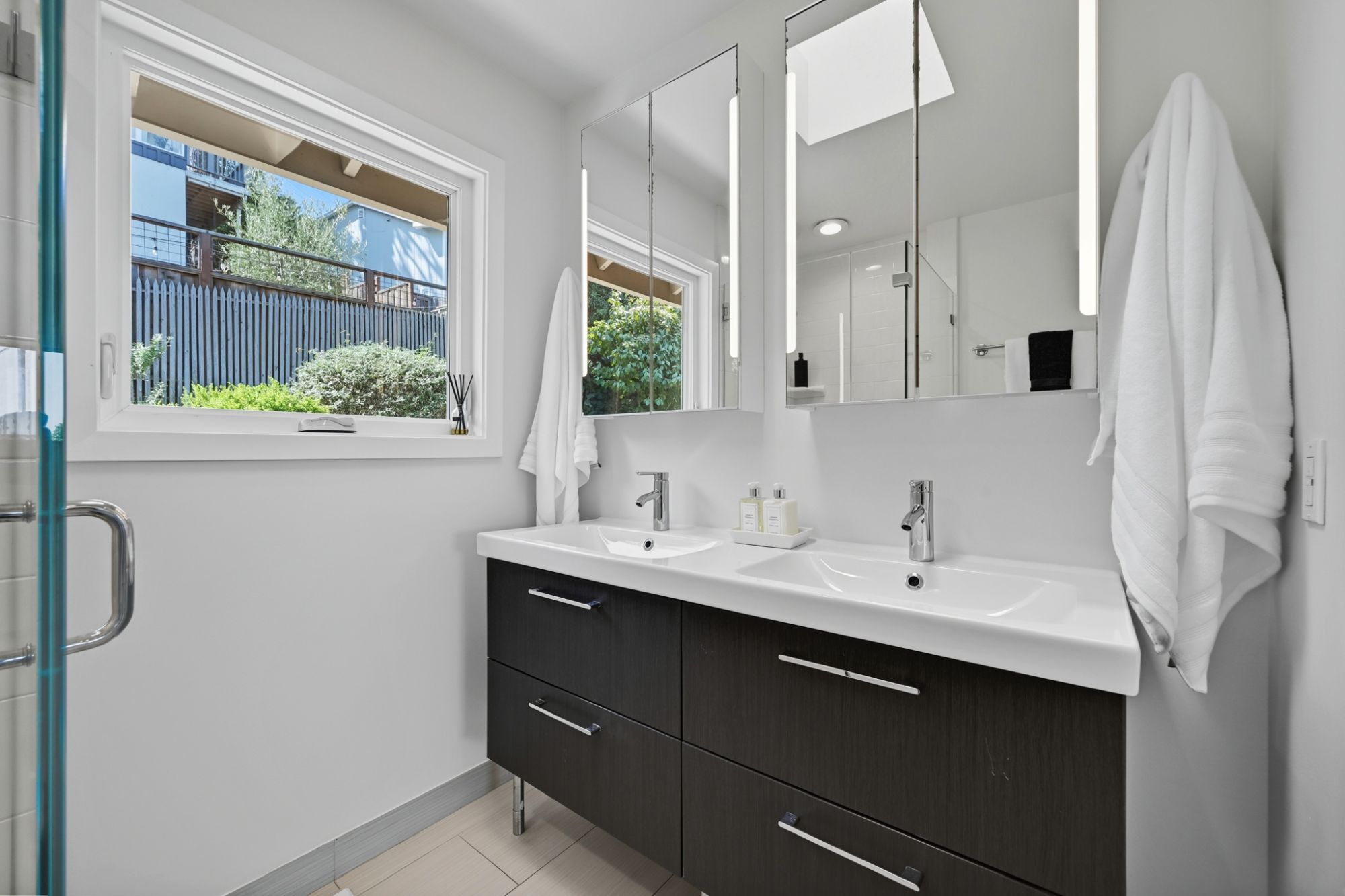 with double sinks and stall shower. Two additional bedrooms share a full bath,
