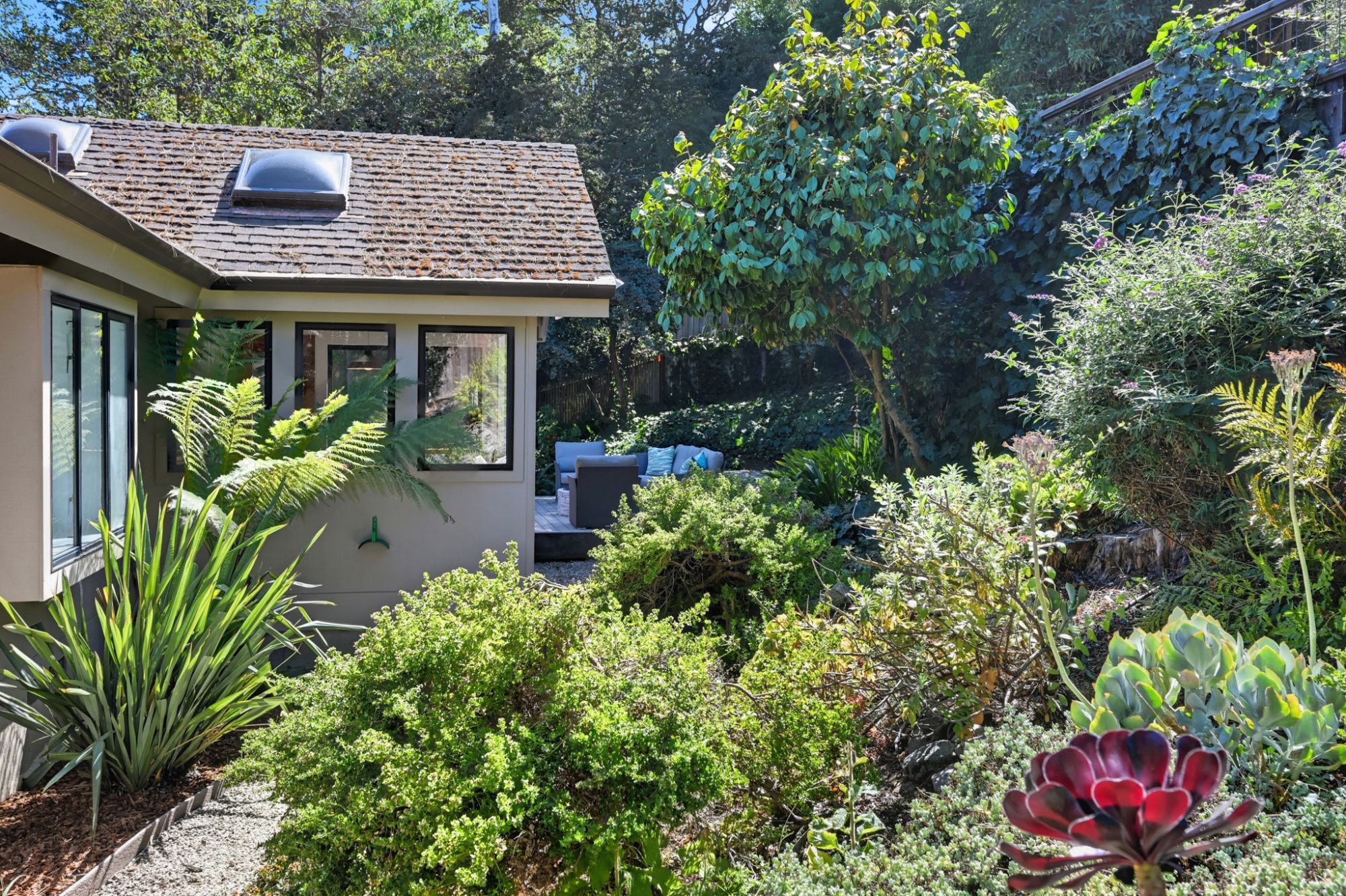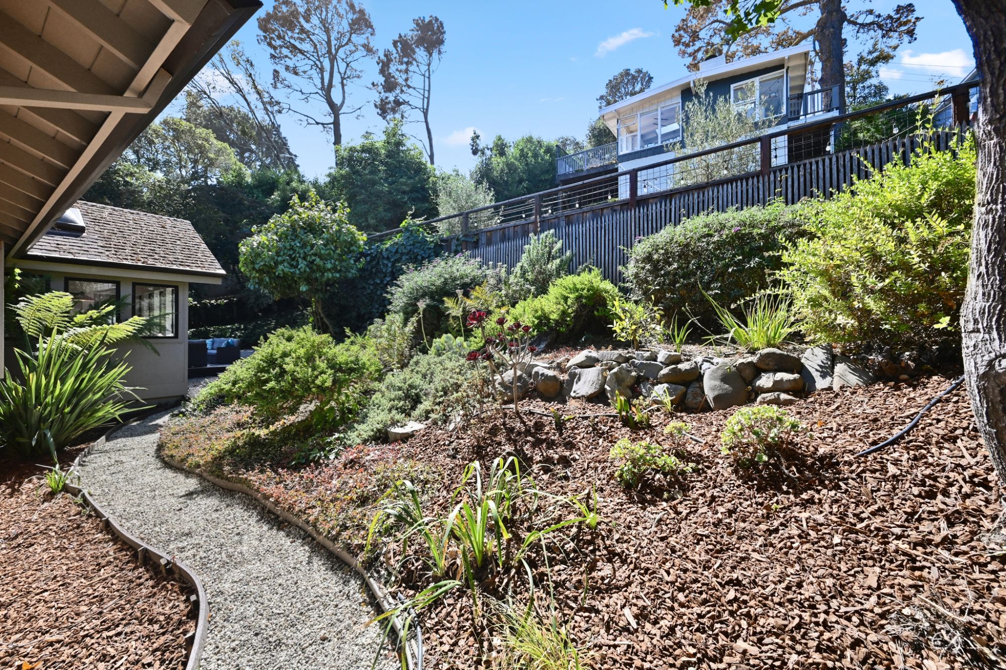 large deck and hillside gardens, custom landscaped with native plants, ideal